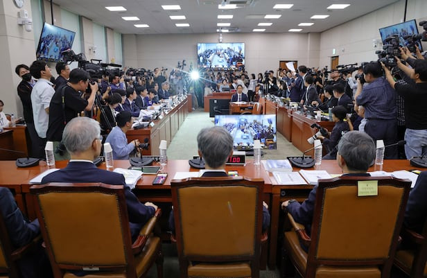 與 질의 강행... 野 "감금" 반발 집중포화에 곤욕, 정회 후 이석