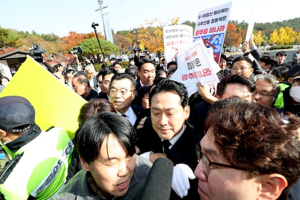 5·18묘역 찾은 장동혁, 시민단체 반발에 참배 못해