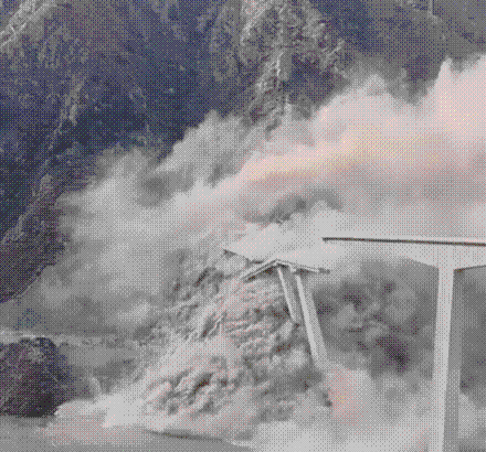 현지 소셜미디어에는 당시 상황이 담긴 영상이 확산했다. 이를 보면, 교량은 굉음을 내며 맥없이 무너진다. 다량의 암석이 쏟아지고, 흙먼지와 분진이 현장을 뒤덮는 모습도 포착됐다.