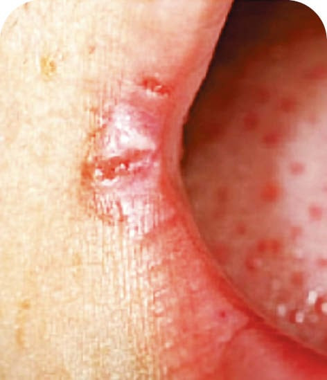 입술 양쪽 끝이 반복적으로 갈라지고 붉어지는 증상의 구각염은 철분 부족, 비타민 B2 결핍, 아토피, 만성적인 당 조절 불량 등을 반영한다고 알려져 있다. 영양 상태가 좋지 않은 사람에게 더 흔히 나타난다.