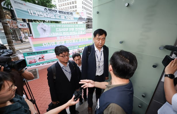 2010년 7월 서울 중구 정동길 경향신문사 건물. 잘린 돼지 머리와 명태, 떡, 사과 등이 상에 올랐다. 민주노총 사무실은 1995년 출범 당시엔 서울 성북구에 있었고, 1999년 영등포구 대영빌딩으로 자리를 옮겼다. 이날 정동으로 사무실을 옮기며 고사를 지낸 것이다.