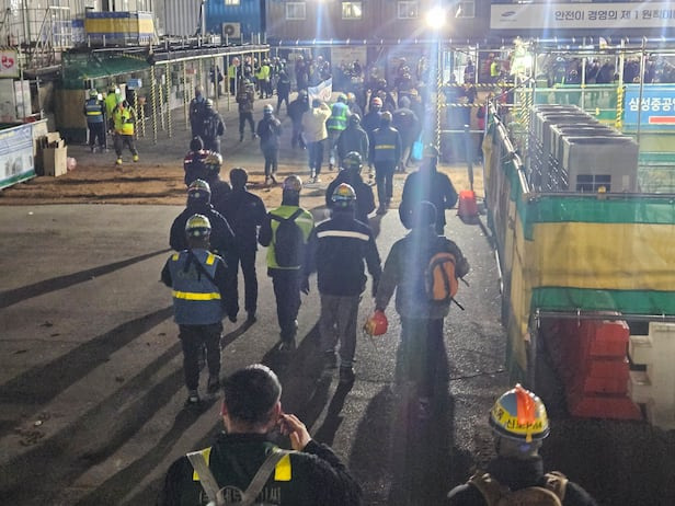 지난 19일 오전 5시 새벽 어둠을 뚫고 안전모와 방진 마스크로 무장한 건설 노동자들이 하나둘 모습을 드러냈다. 세계 최대 반도체 생산 기지인 경기 평택시 고덕면 삼성전자 평택캠퍼스 P4·P5(4·5공장) 건설 현장이다. 2024년 초 글로벌 반도체 공급 과잉으로 한때 중단됐던 공장 건설이 작년 11월 재개되면서 전국 노동자들이 몰려든 것이다. 오전 5시 30분이 되자 공장 일대는 서울 지하철 환승역을 보는 듯 붐볐다. 근처 함바집과 하청 업체가 운영하는 45인승 통근 버스가 쉴 새 없이 오가면서 건설 일꾼들을 태워 날랐다. 대낮처럼 환한 조명이 켜진 공장 게이트 앞에는 노동자들이 타고 온 오토바이 수백 대가 줄을 섰다. 줄이 500m를 넘었다.